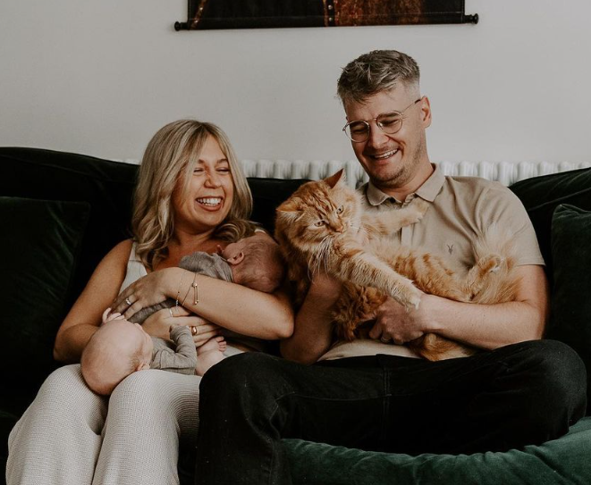 This is all 5 of us! Alix, Ryan, Ronald (The Cat) and our beautiful twin boys.